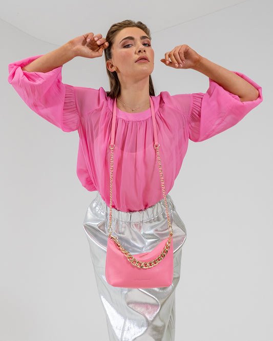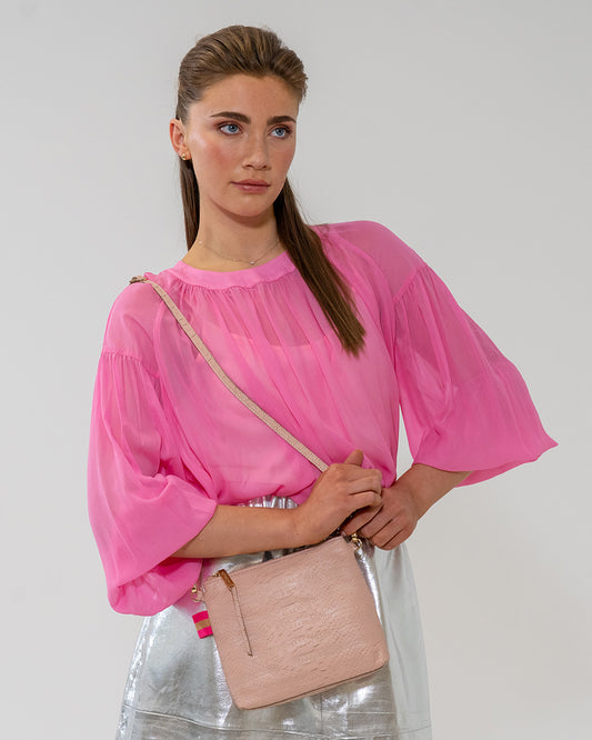 Accent Guitar Strap - Hot Pink/Bronze with Rose Gold Tab