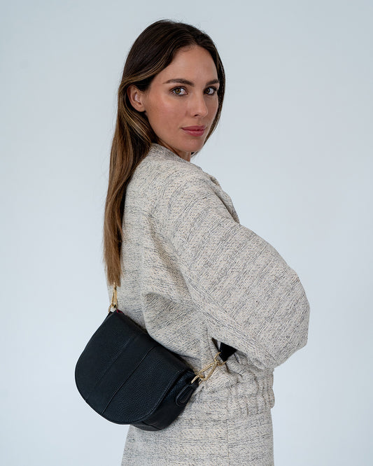 Sinead Roll Neck Knit - Black/Quinoa Stripe