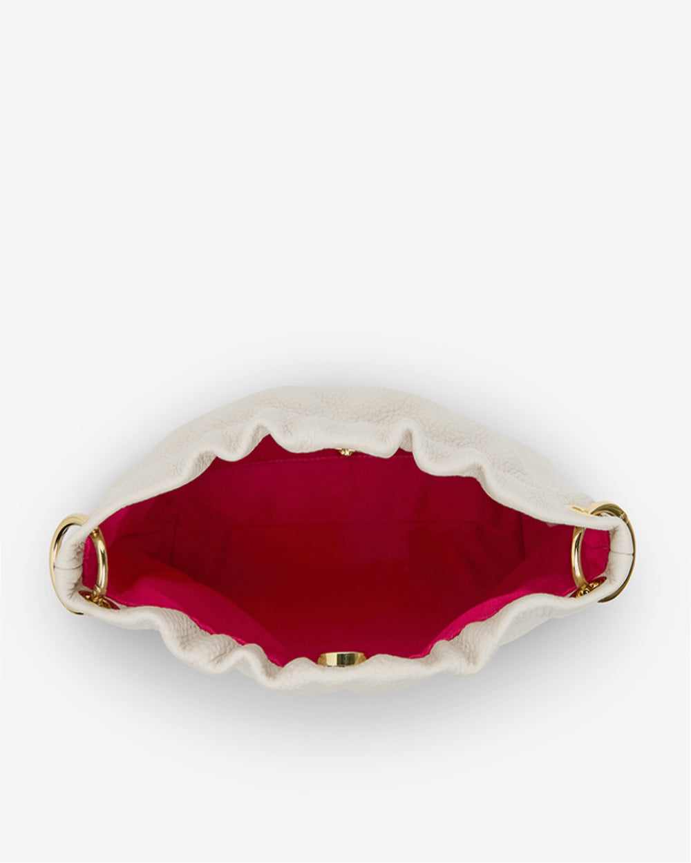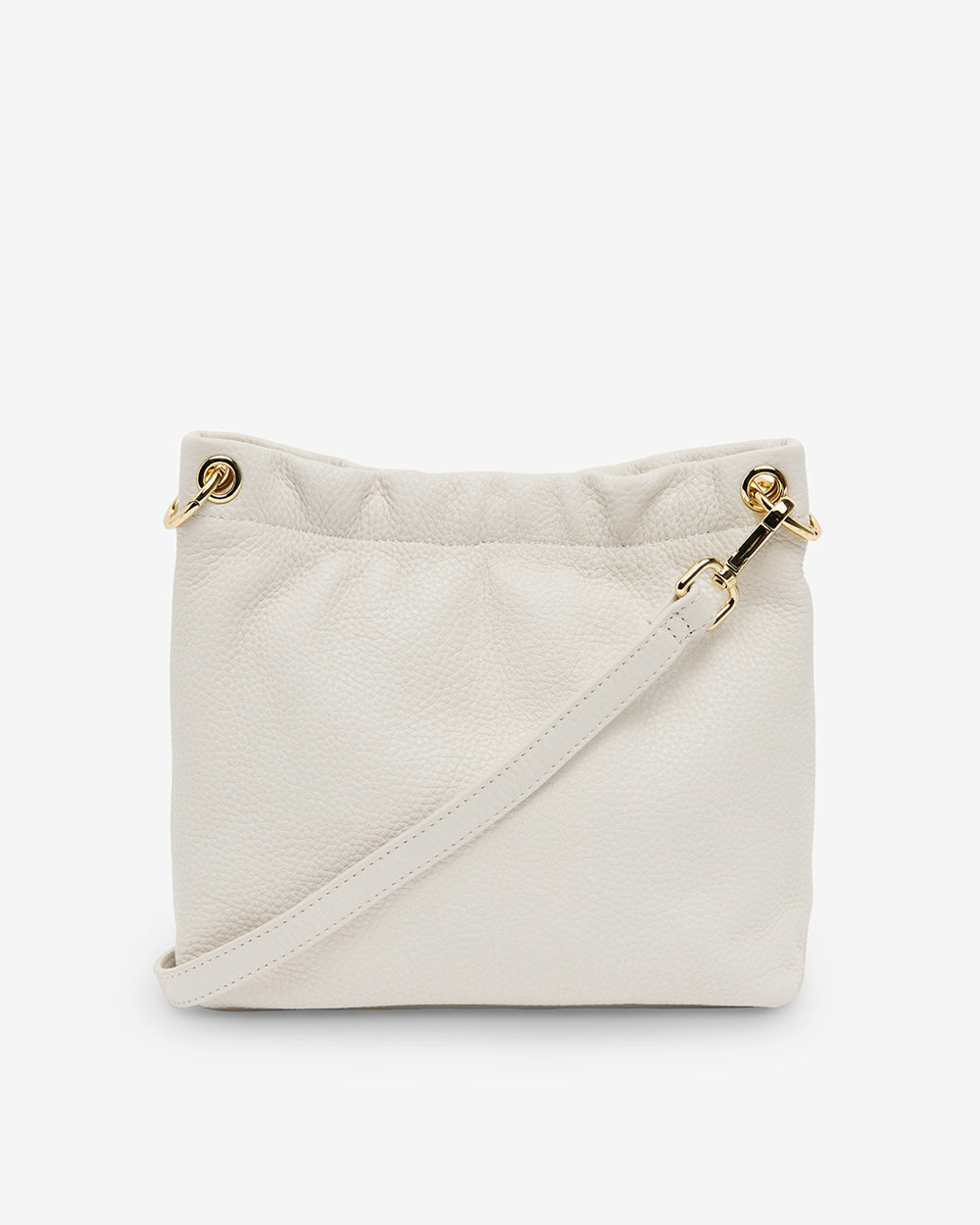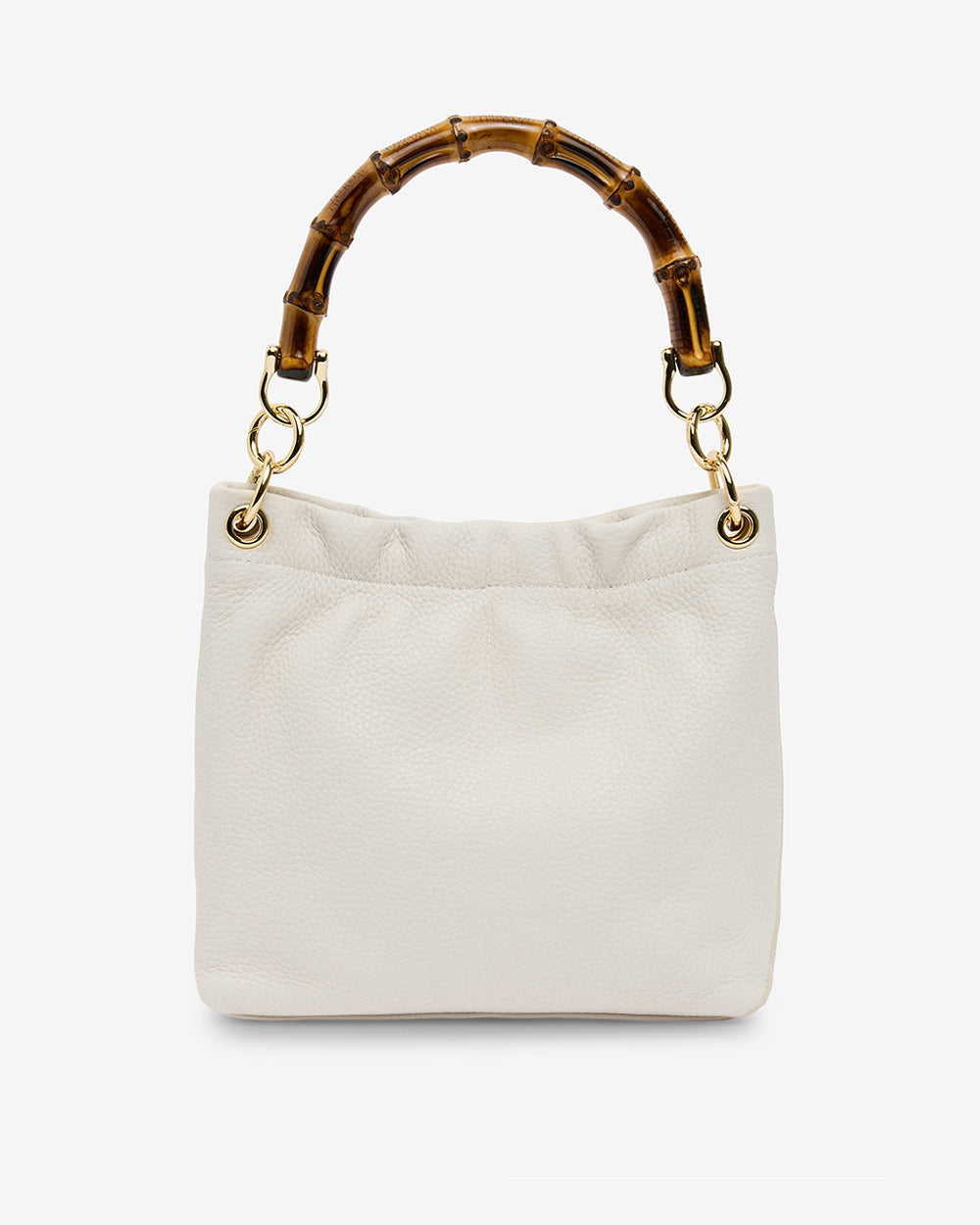 The Mimi Crossbody Bag is crafted in soft pebble leather with a gentle gathered detail along the top opening. A hidden magnetic closure keeps your essentials secure, while the bamboo top handle and removable, adjustable leather crossbody strap offer versatile ways to carry it. Practical and stylish, the Mimi Crossbody is the perfect everyday bag that moves effortlessly from day to night.