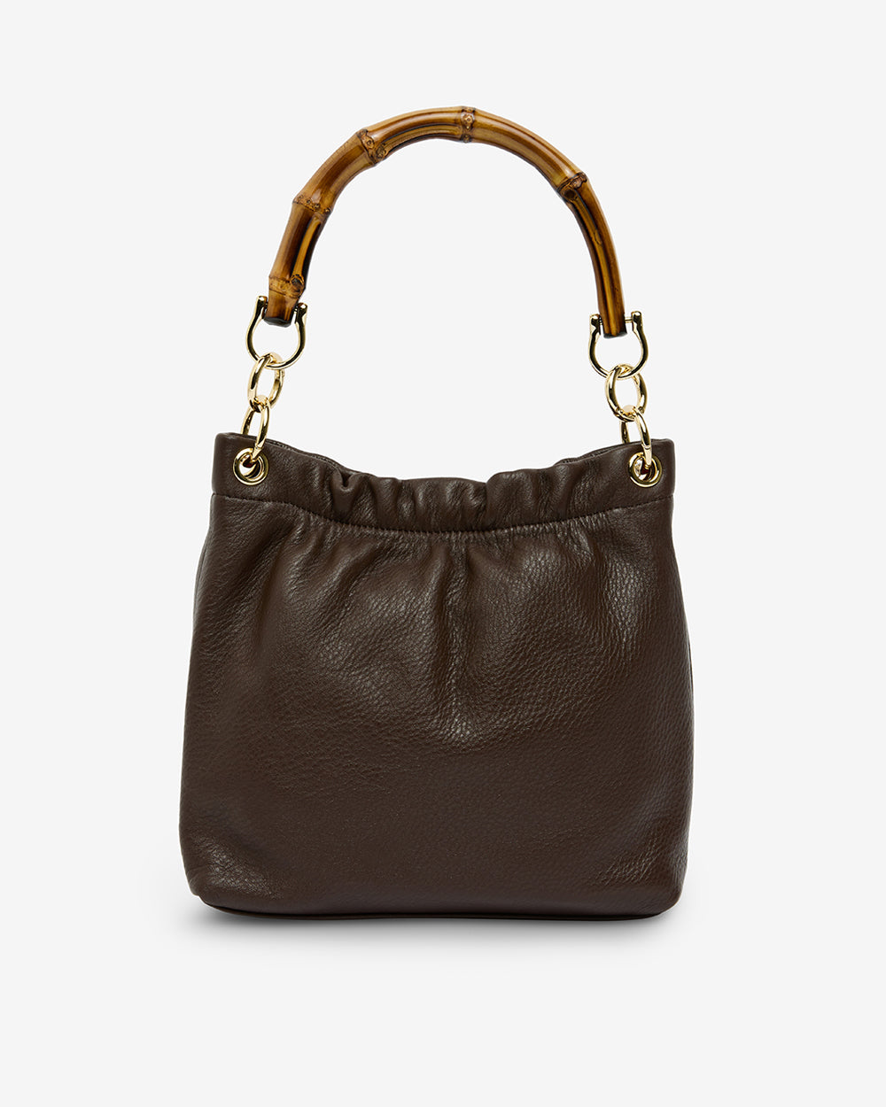 The Mimi Crossbody Bag is crafted in soft pebble leather with a gentle gathered detail along the top opening. A hidden magnetic closure keeps your essentials secure, while the bamboo top handle and removable, adjustable leather crossbody strap offer versatile ways to carry it. Practical and stylish, the Mimi Crossbody is the perfect everyday bag that moves effortlessly from day to night.