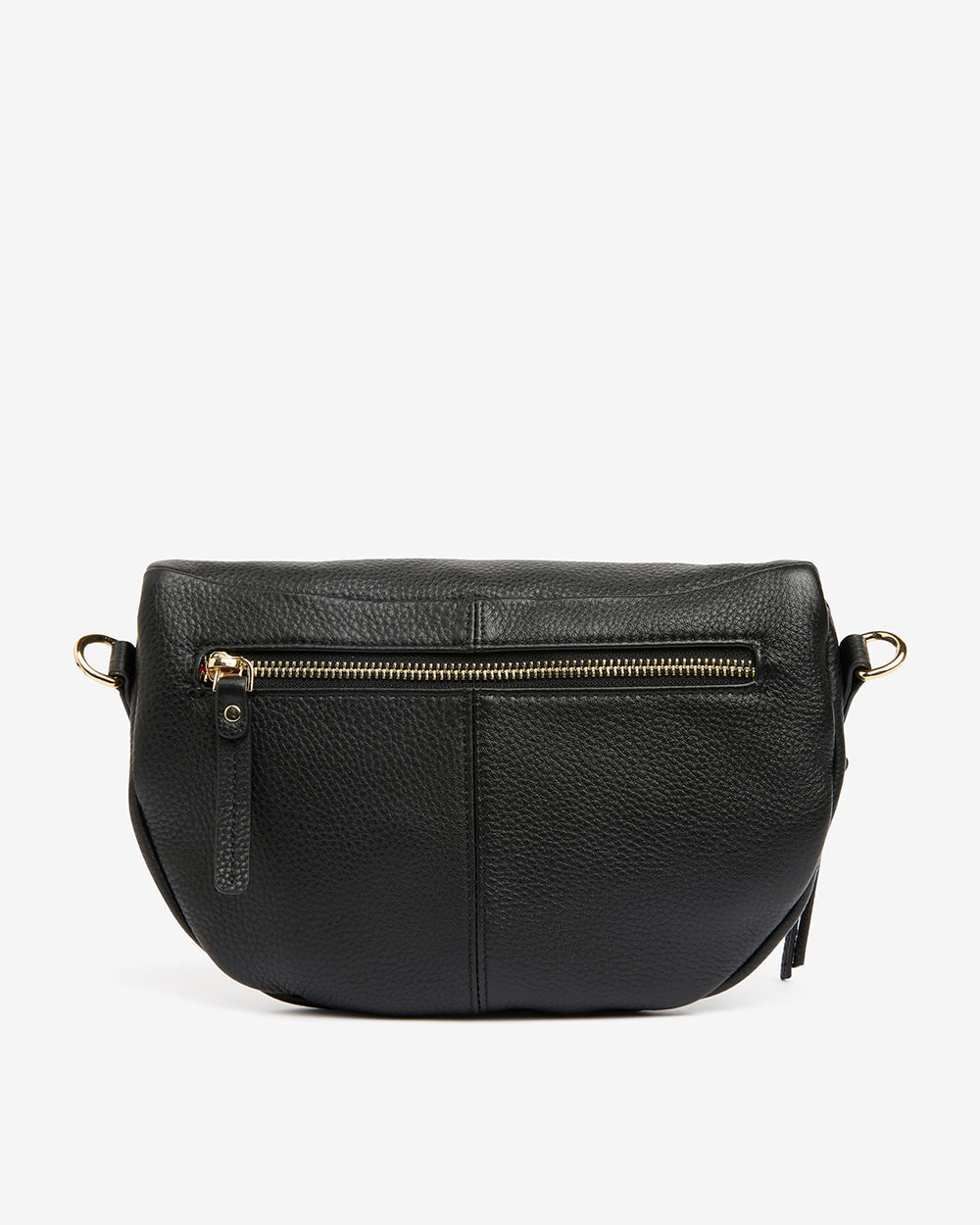 The Arlington Milne Zara Sling Bag is crafted from premium leather and features light gold hardware and an embossed logo. The bag offers three strap options, allowing you to create your own signature style. The top front zipper closure opens to reveal our signature hot pink twill lining and an interior zip pocket. The bag also features a secure zipper pocket on the back face.